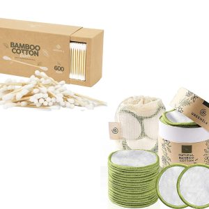 Eco-Friendly Bamboo and Cotton Washable Reusable Rounds and Biodegradable Swabs Bundle