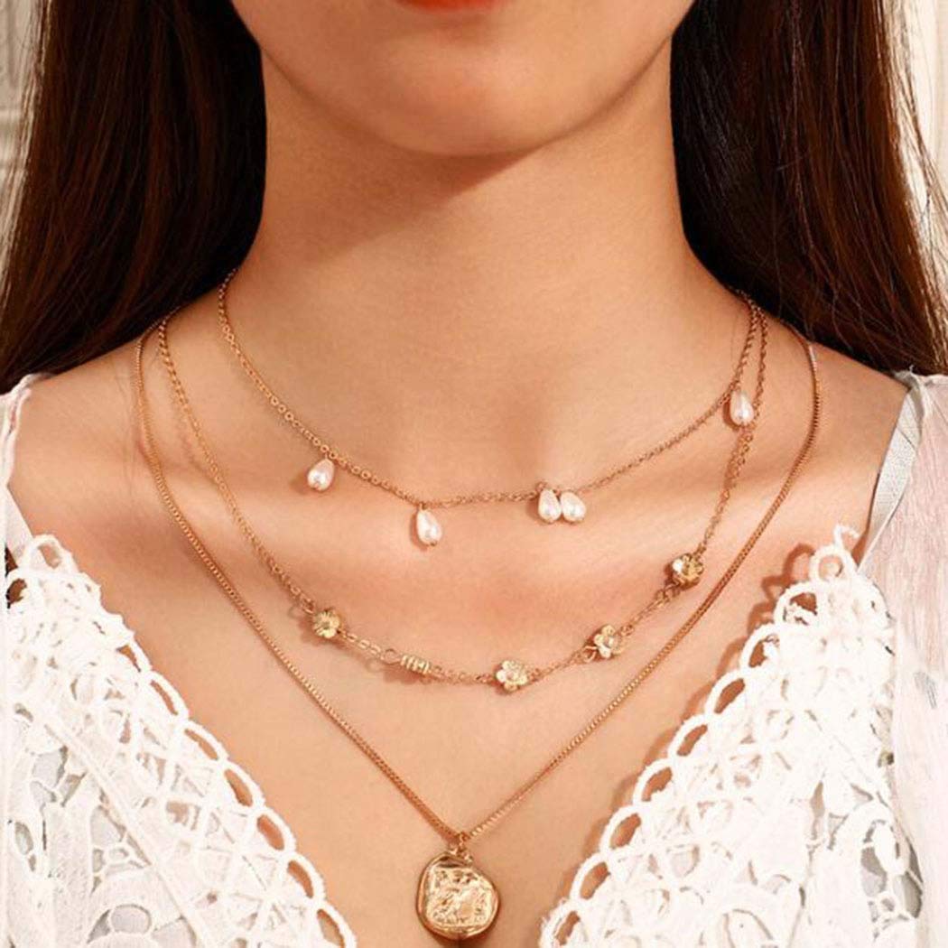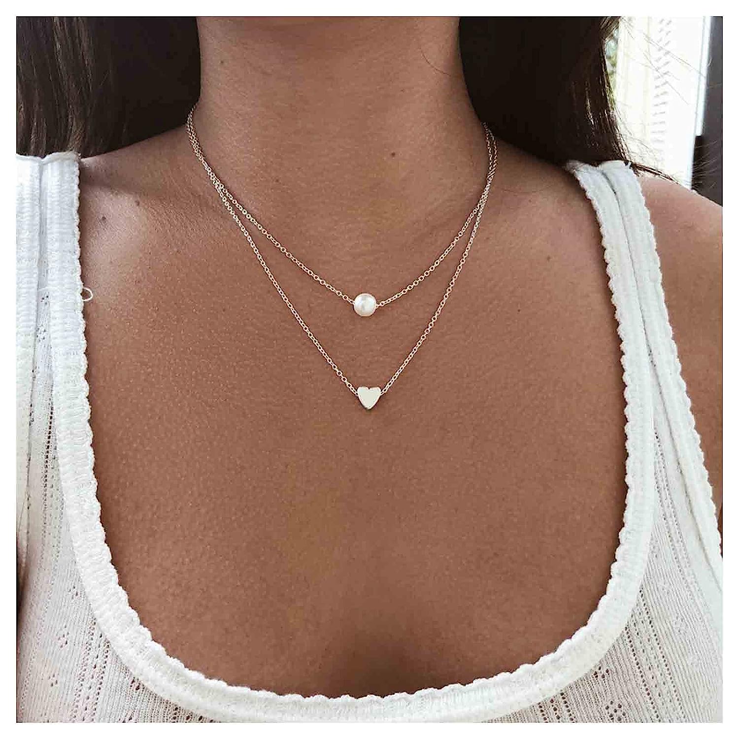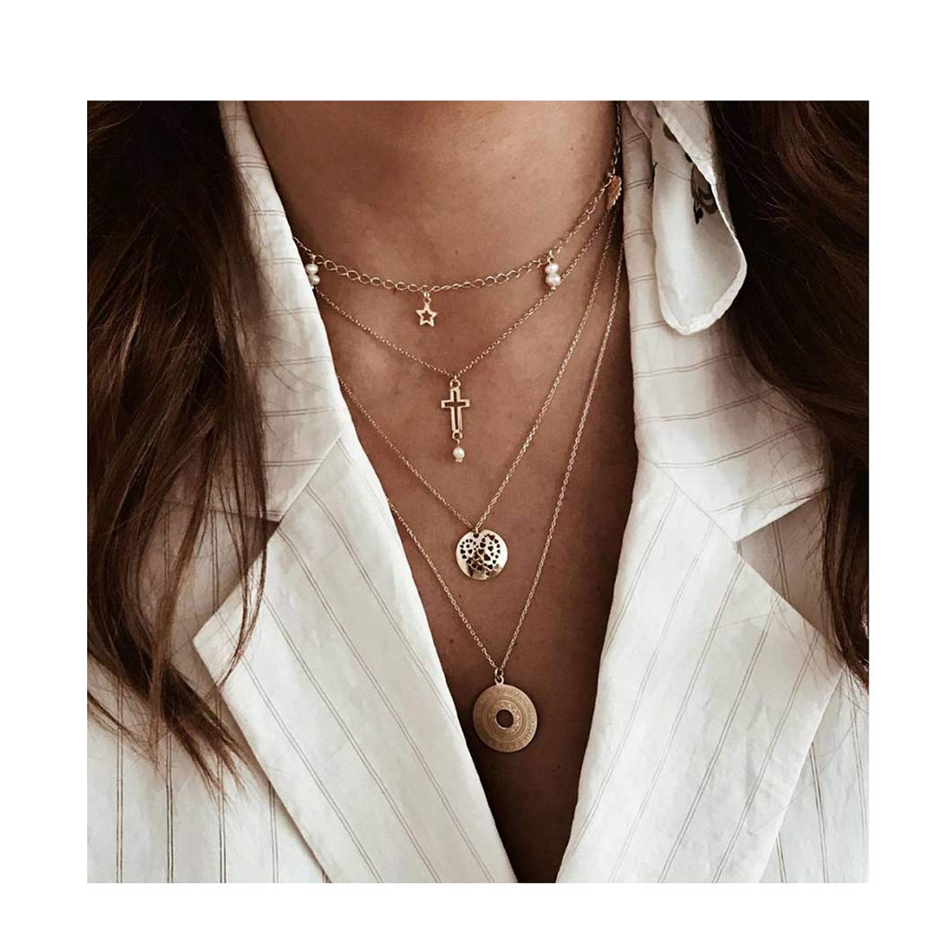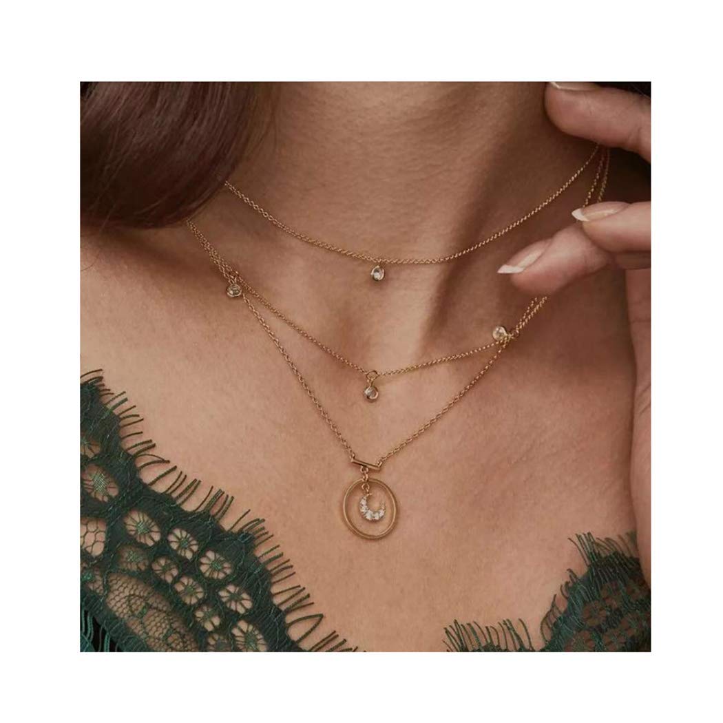 Boho Layered Necklace Moon Pendant Crystal Necklaces Jewelry for Women and Girls