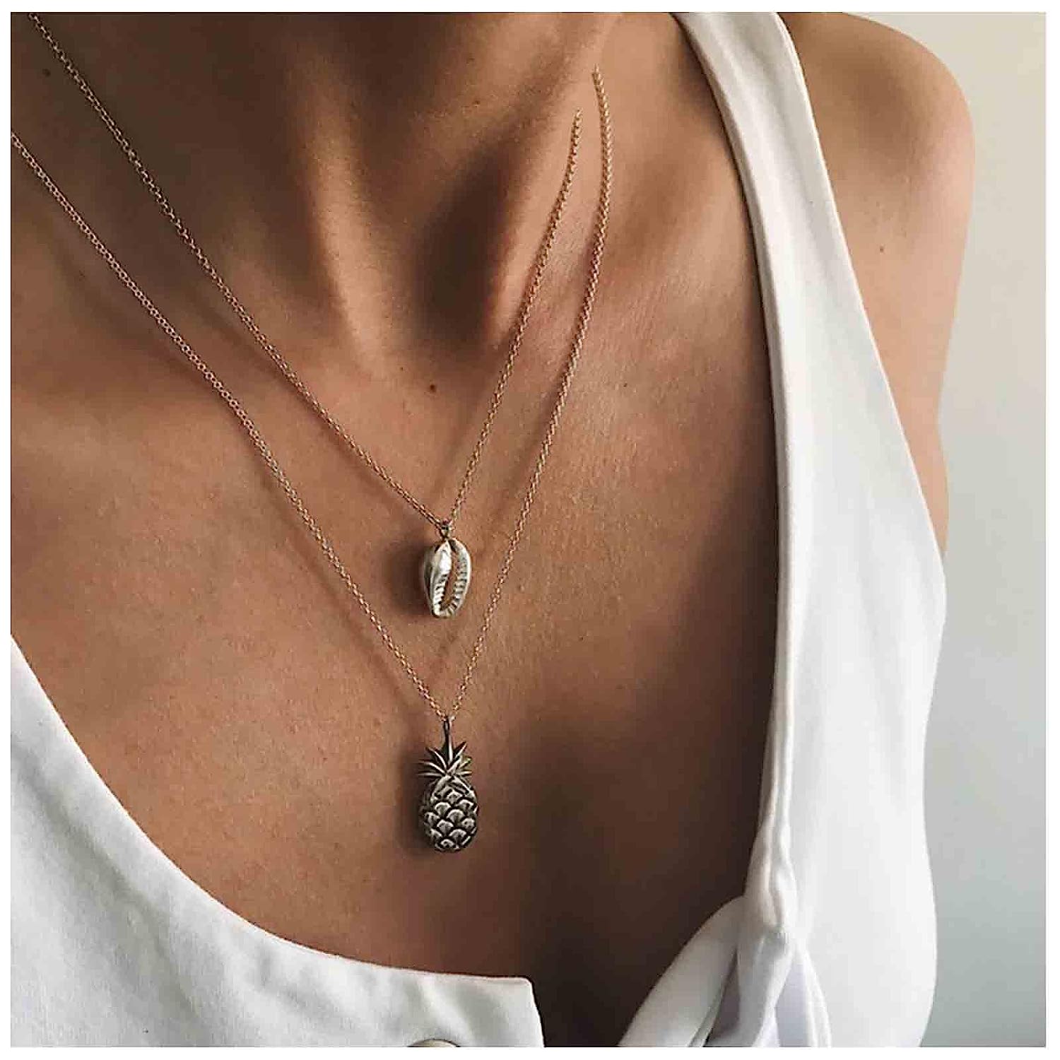 Boho Layered Shell Pendant Necklace Gold Sequins Necklaces Chain Jewelry for Women and Girls