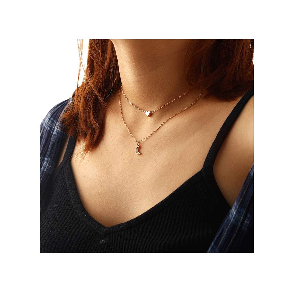 Boho Moon Necklace Heart Pendant Necklace Gold Jewelry Accessories for Women and Girls