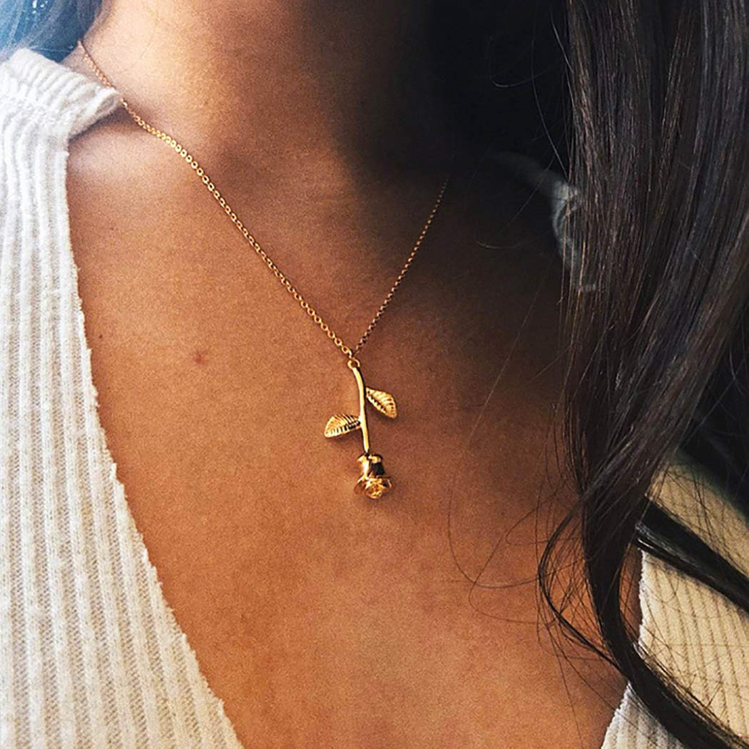 Boho Rose Pendant Necklaces Gold Short Summer Beach Necklace Chain Jewelry for Women and Girls
