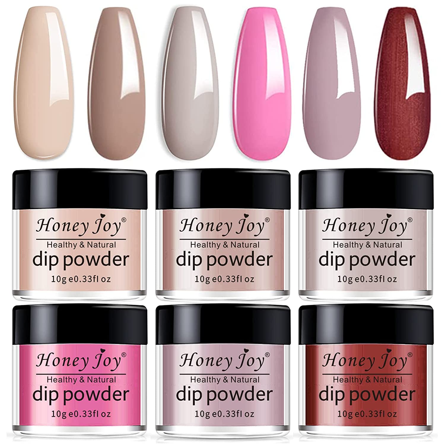 Dipping Powder Brown Nude Dark Pink Purple Colors No Need Lamp Cure Dip Powder Nails,Like Gel Polish Effect, Even & Smooth Finishing (44-69-71-100-87-88-10g/box)