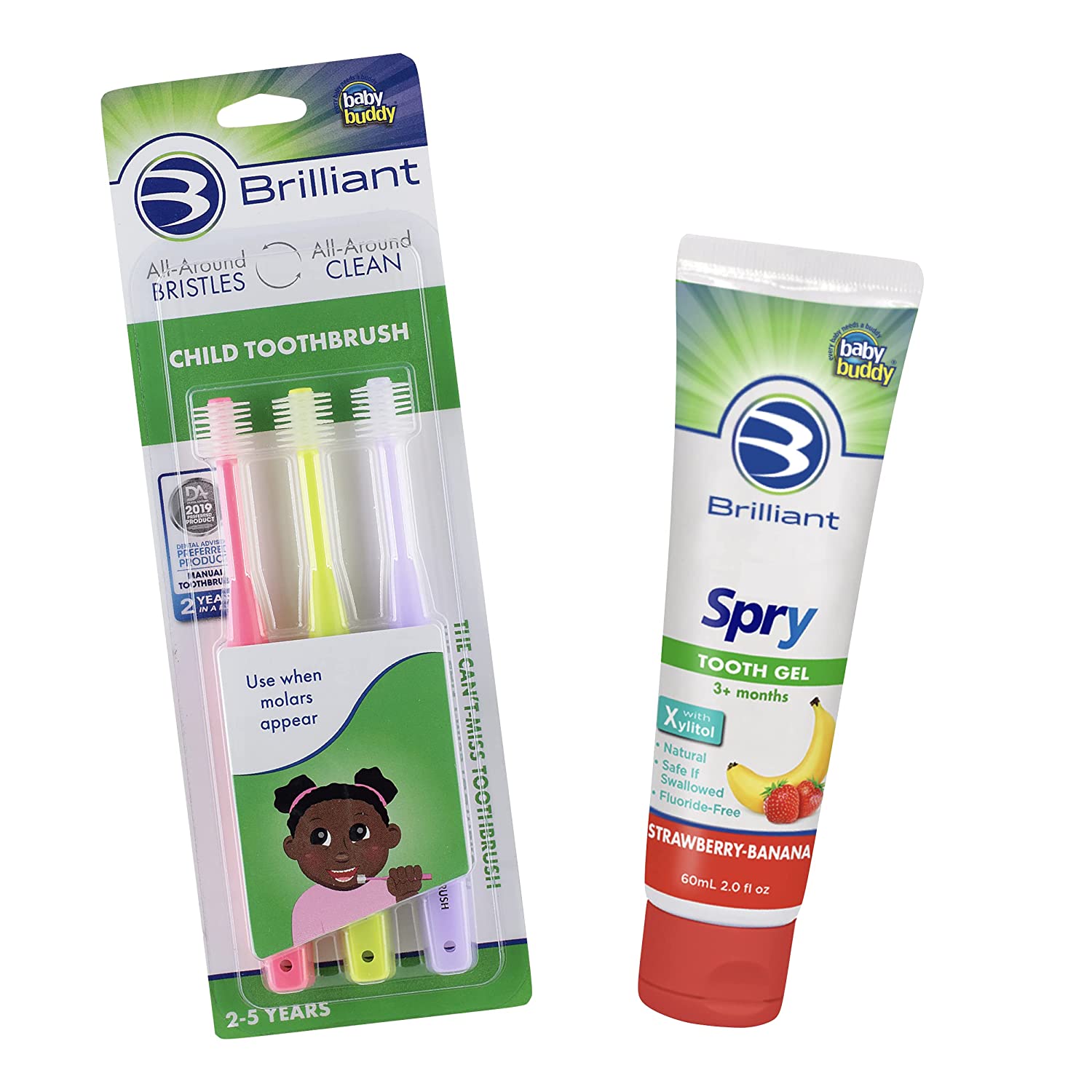 by Baby Buddy Child Toothbrush and Spry Xylitol Tooth Gel Bundle, Pink-Lime-Lilac