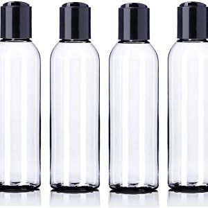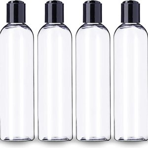 Clear Plastic Empty Squeeze Bottles with Disc Top Caps & Clear TSA Approved Toiletry Bag 4 Pack