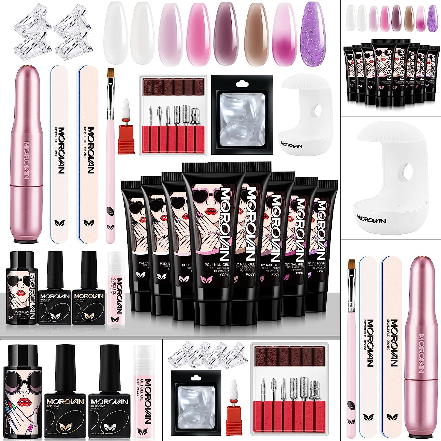 Short Coffin Nail Tips and Glue Gel Kit and 3PCS Matte Gel Top Coat Base Set