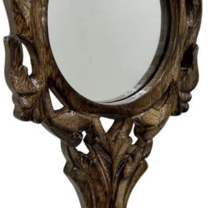 Mirror Wooden Brown Compact Travel Makeover Antique Victorian Floral Deisgn Handmade Vanity