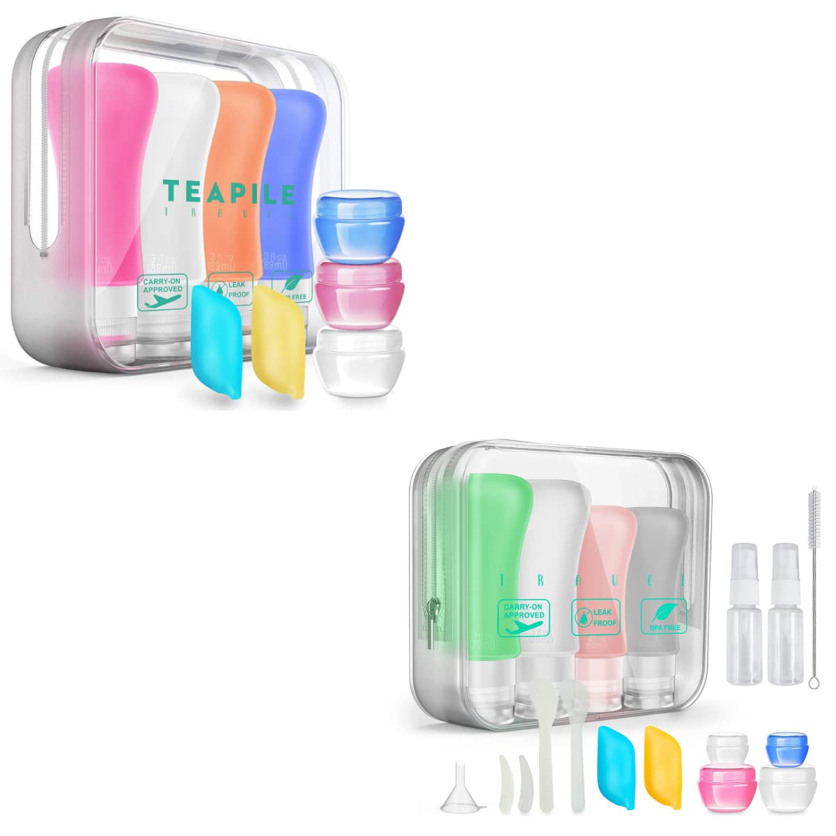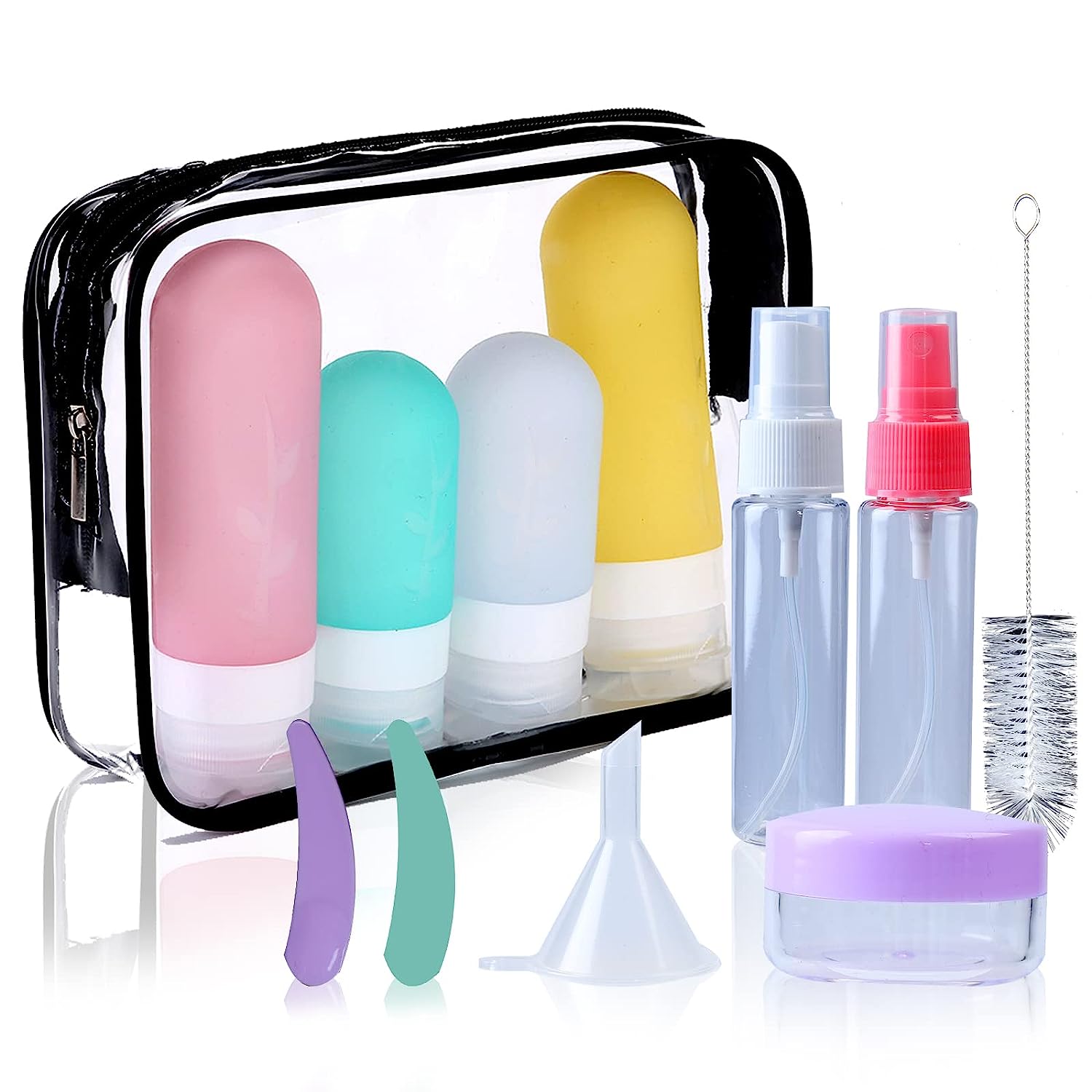 17 Pack Travel Pouches for Toiletries BPA Free Refillable Travel Containers & Travel Size Refillable Empty Bottles