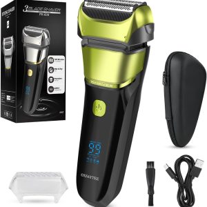 Foil Electric Shaver Electric Razor for Men Cordless USB-C Rechargeable Shaver with Pop-up Trimmer, Waterproof Wet and Dry Foil Razor with Travel Pouch LED Display for Face Beard Style, Green
