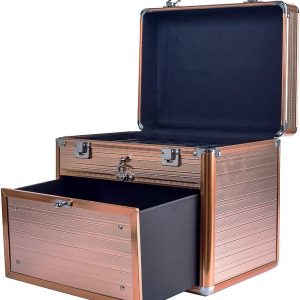 Polish Case With Drawer and Dividers Makeup Travel Case Portable Cosmetic Organizer-Rose Gold