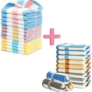 Washcloths 24 Pack 6-Color Bundle – Cotton Wash Cloths for Body and Face 13 x 13 Inches