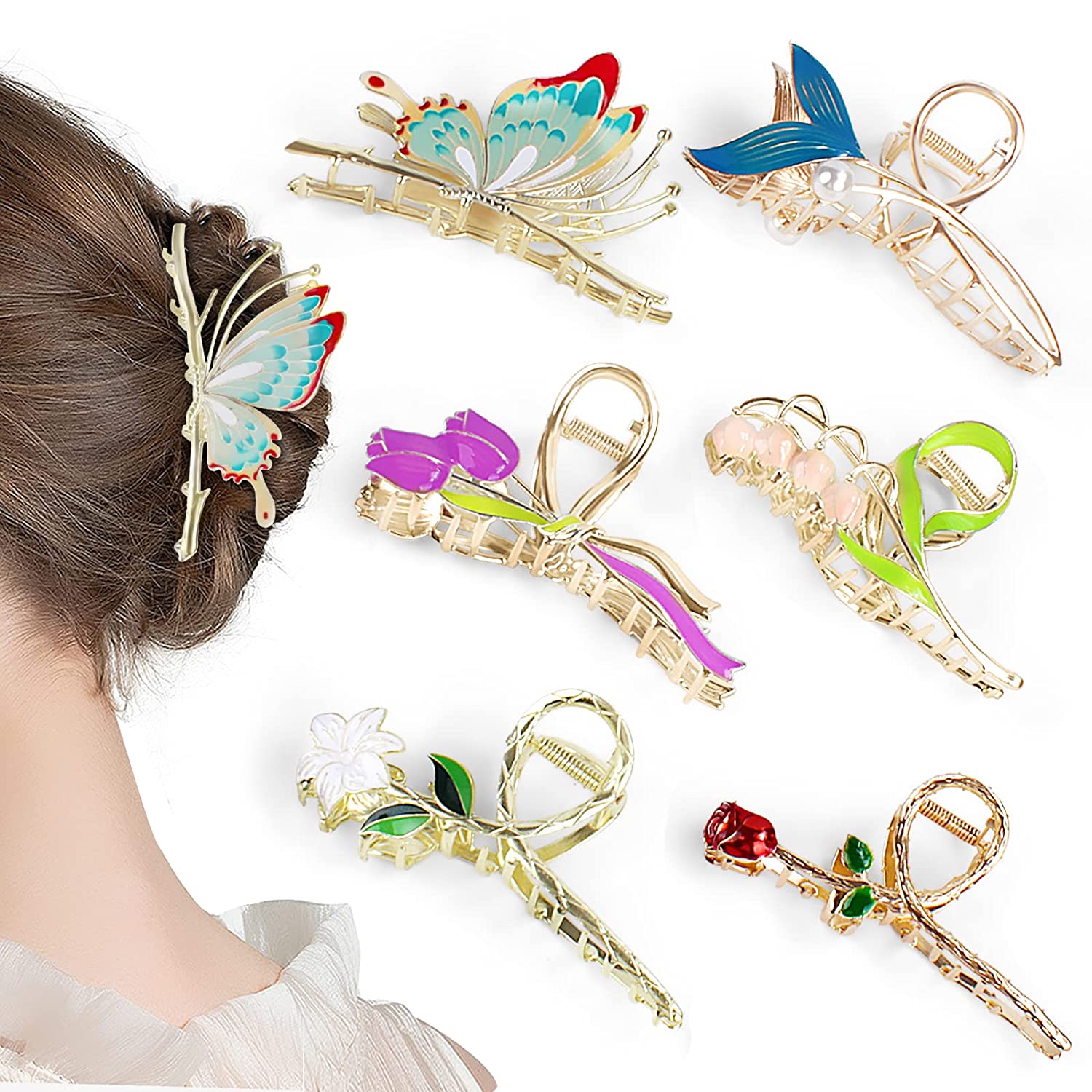 Pcs Flower Metal Hair Claw Clips, Big Cute Butterfly Hair Clips Non-Slip Strong Hold Metal Jaw Clips Fashion Hair Accessories for Women, Hair Barrettes Clamps for Thick Thin Curly Hair