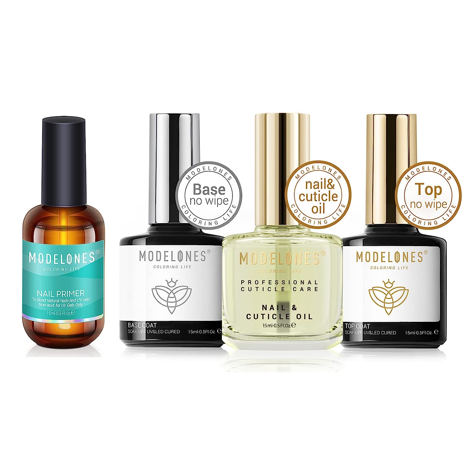 4Pcs Nail Primer with No Wipe Base Top Coat and Cuticle Oil Set