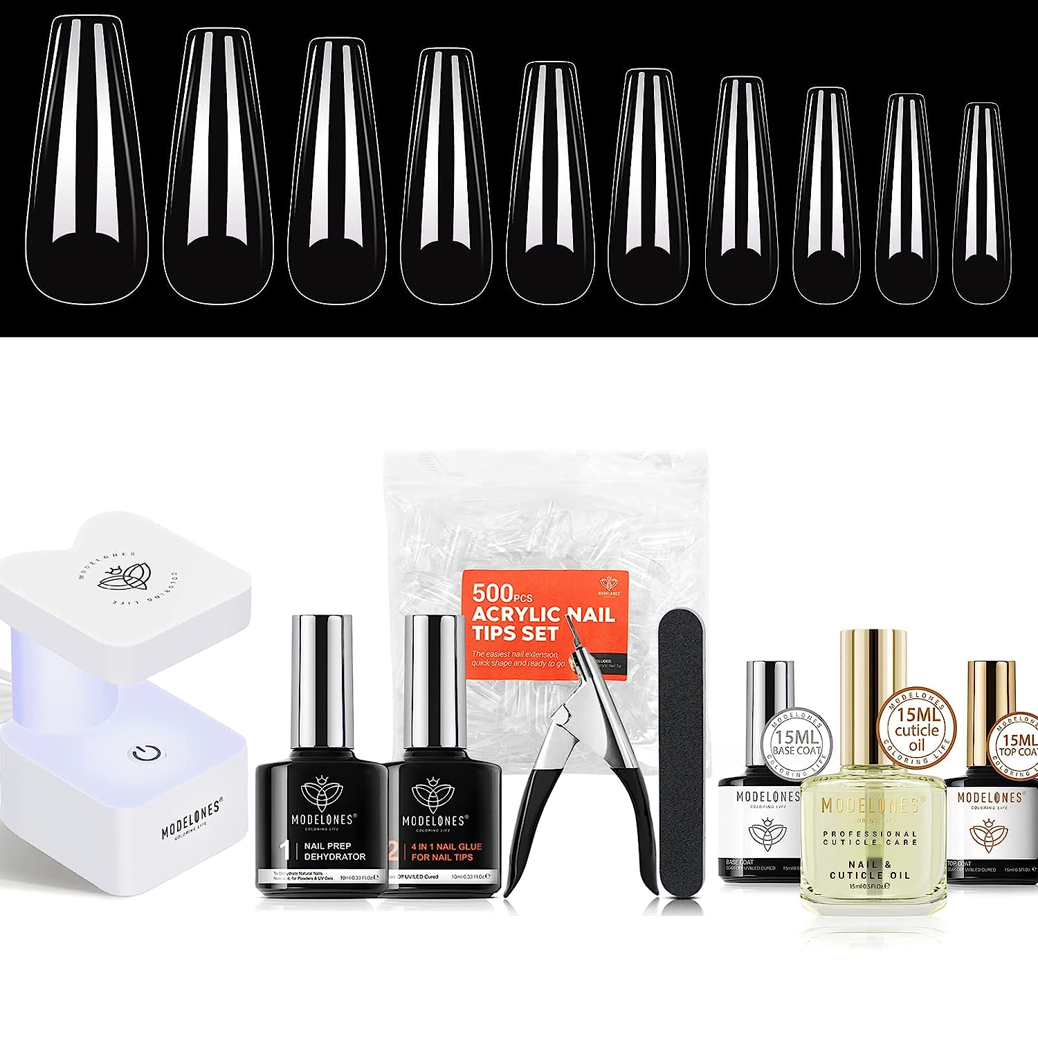 15ml Gel Top Coat & Base with Cuticle Oil Set, & 500Pcs Nail Tips and Glue Gel Kit
