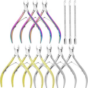 Cuticle Trimmer, Cuticle Nipper With Cuticle Pusher Cuticle Nipper Cuticle Remover Cutter Stainless Steel Nail Cuticle Trimmer Manicure Pedicure Tools For Finger, Toenails-Gold, Rainbow, Sliver