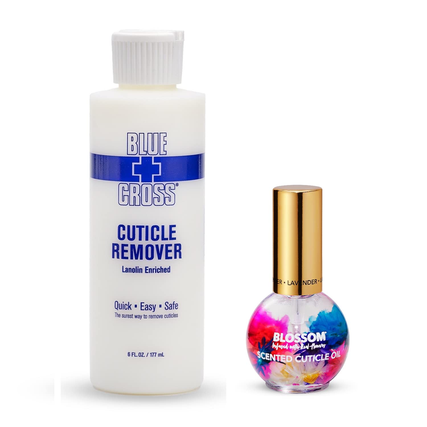 Hydrating, Moisturizing, Strengthening Lavender Scented Cuticle Oil, 0.42 Fl oz + Blue Cross Professional Nail Care Cuticle Remover Liquid 6 Fl oz, 2 Pack Bundle, Made in USA