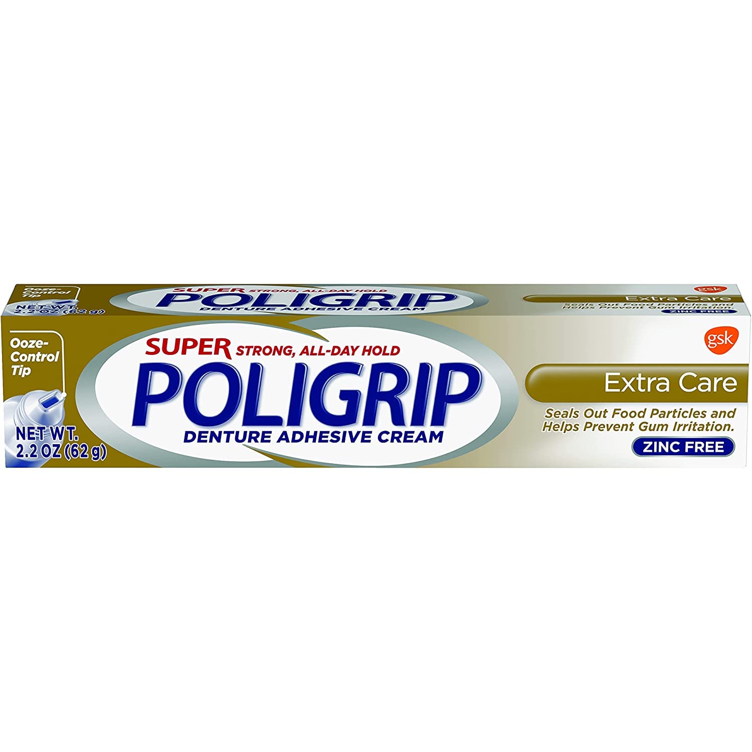 POLIGRIP Denture Adhesive Cream Extra Care 2.20 oz (Packs of 6)