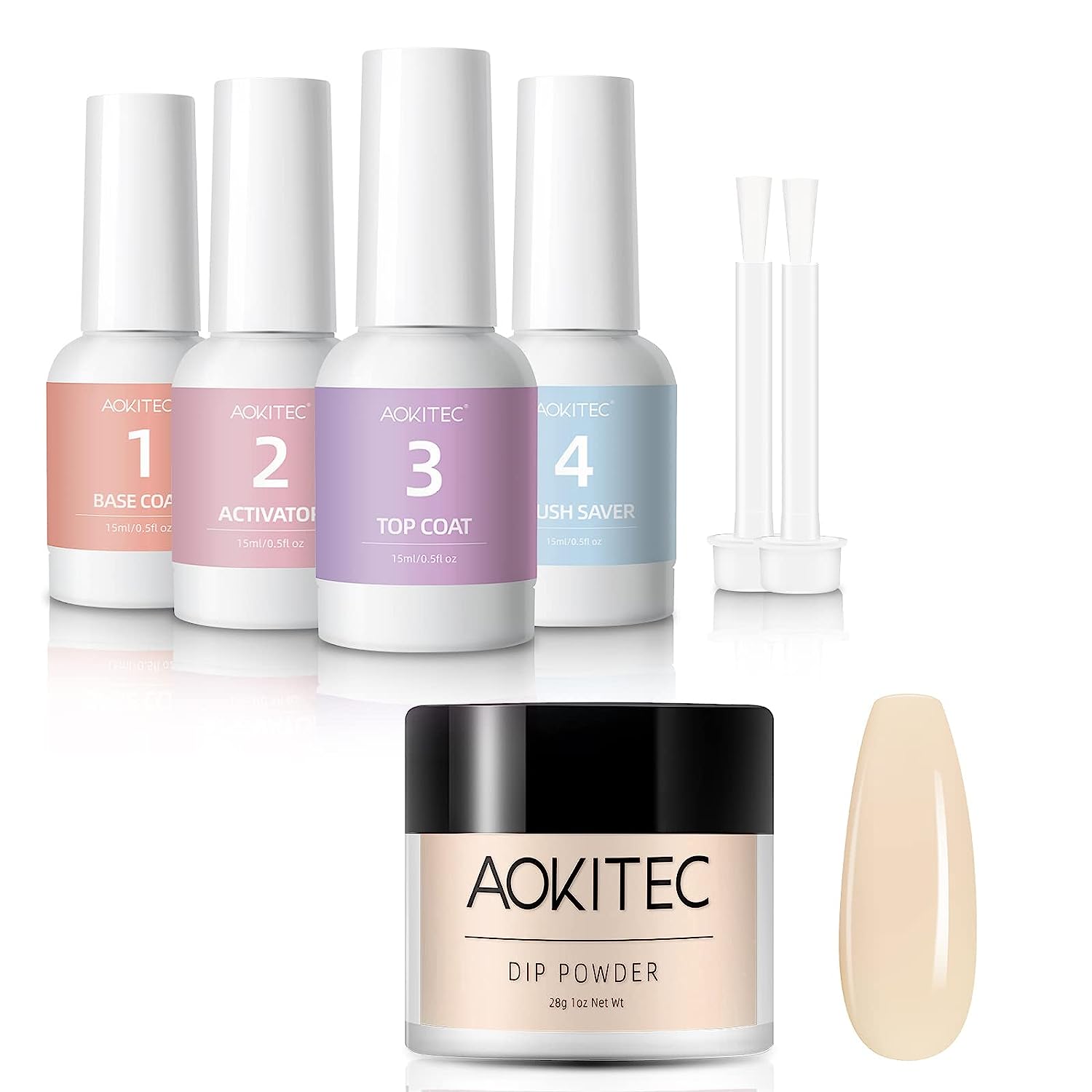 Dip Powder Nude Color 1OZ,Dip Powder Liquid Set 0.5oz Acrylic Dipping Powder Gel With Base & Top Coat Activator Brush Saver Dip liquid Nail Tools Kit 4+2Pcs Manicure Set