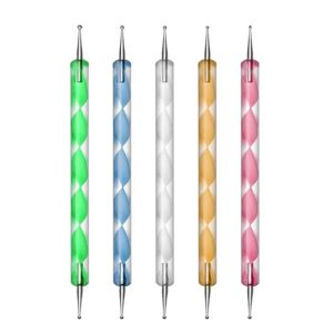 5Pcs Double Ended Dotting Pen Tool Nail Art Tip Dot Paint Manicure Tool,5 Colors