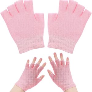 Moisturizing Gloves 1 Pair of Moisturizing Gel Gloves Fingerless Moisture Gloves Gel Therapy Glove for Dry Cracked Hands Treatment for Women Girls (Pink)