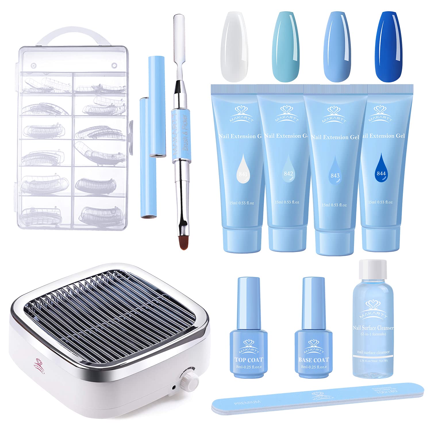 Pastel Blue Poly Nail Gel Kit Summer Colors and 60W Nail Dust Collector with 2 Powerful Nail Fan Bundle