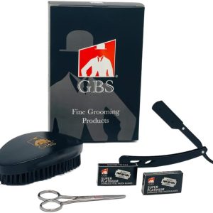 Men”s Grooming Kit Straight Edge Razor Beard Kit Chrome Hair Scissors 5 1/2′ + 3”x5′ Oval Miltary Brush + Shavette Blades Includes Double Edge Blades