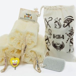 Loofah-Natural Real Egyptian Shower Loofah Sponge+ 1 Free Pumice Stone for feet, Creamy