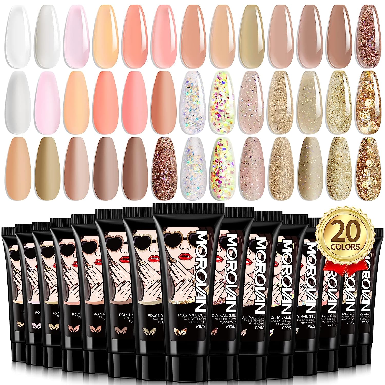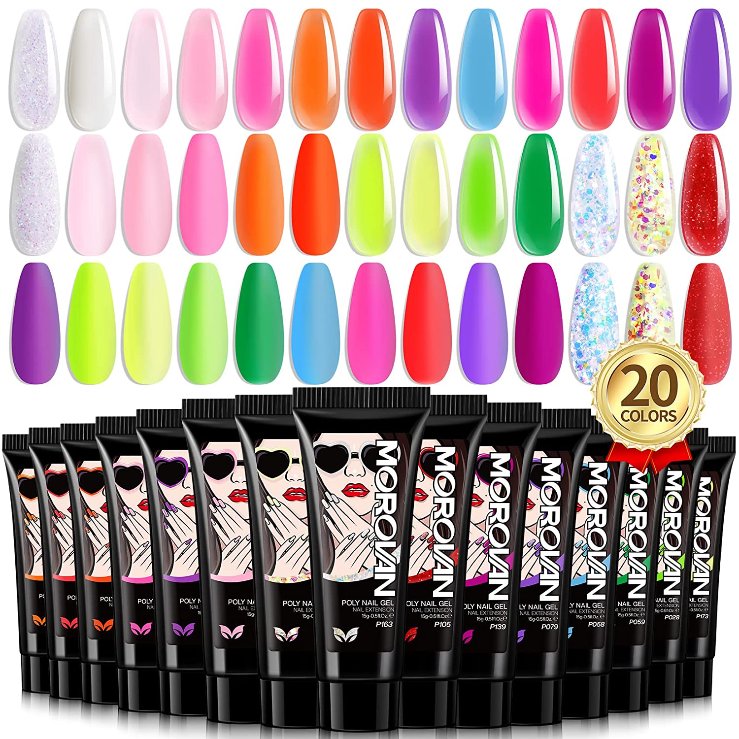 Poly Gel Nail Kit – 20 Colors Nail Extension Gel Professional Poly Nail Gel Kit All Season Poly Gel Color Pack for Art Nails Beginner Poly Gel Kits DIY at Home Poly Nail Kit Enhancement Manicure Kit