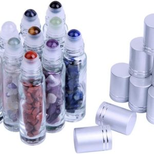10ml Gemstone Essential Oil Roller Bottles Natural Stones Roll-on Bottles with Healing Chips Inside