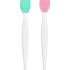 Exfoliator Brush, 4PCS Double Sided Silicone Lip Scrub Brush Nose Exfoliator Tool (Pink and Green)