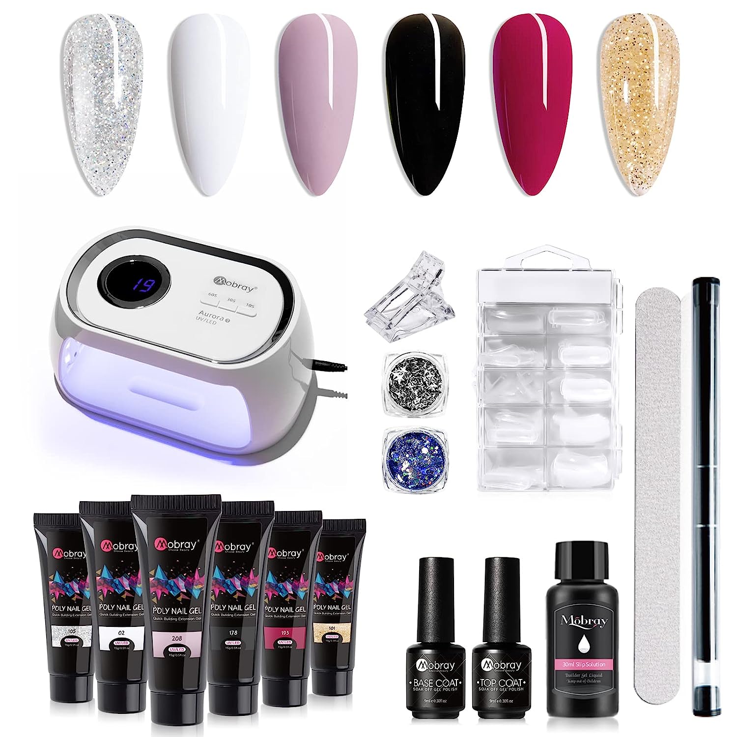 Poly Nail Gel Kit Glitter Poly Extension Gel Polish Set with Nail Lamp