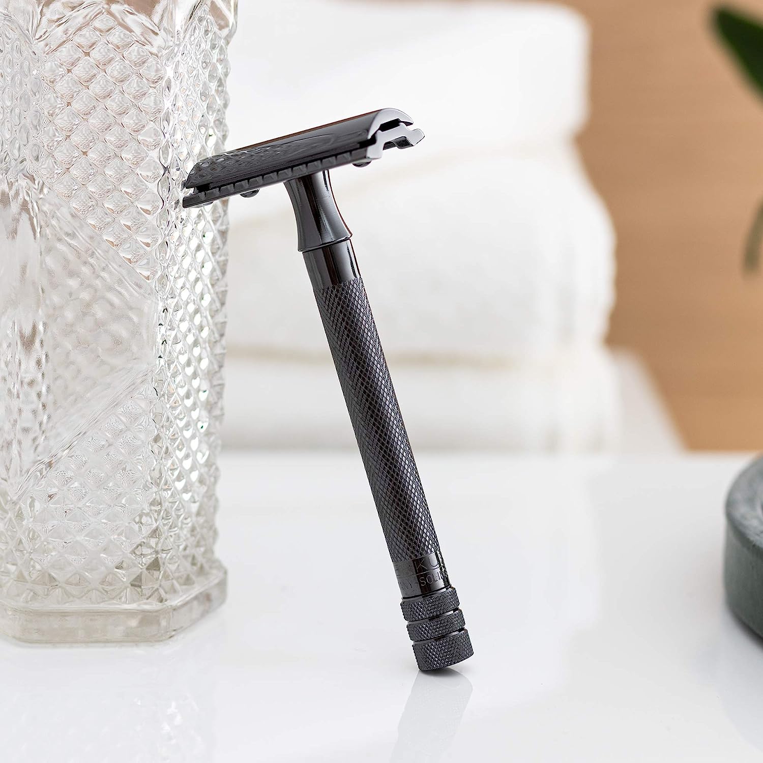 Double Edge Safety Razor, Straight Cut, Extra Long Handle, Black PVD Coated, 1 ct