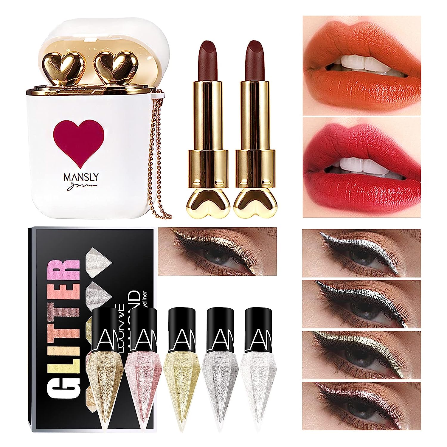 2Pcs/set Matte Blue Earphone Lipstick with 5 Colors Liquid Glitter Metallic Eyeliner Makeup Set