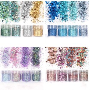 Body Glitter 16 Colors Chunky Glitter for Body Face Hair Make Up Nail Art Mixed Color Glitter