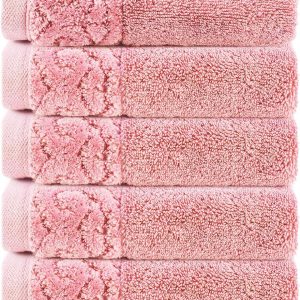 Luxury Cotton Washcloths, Large Hotel Spa Bathroom Face Towel, 6 Pack (Pink)