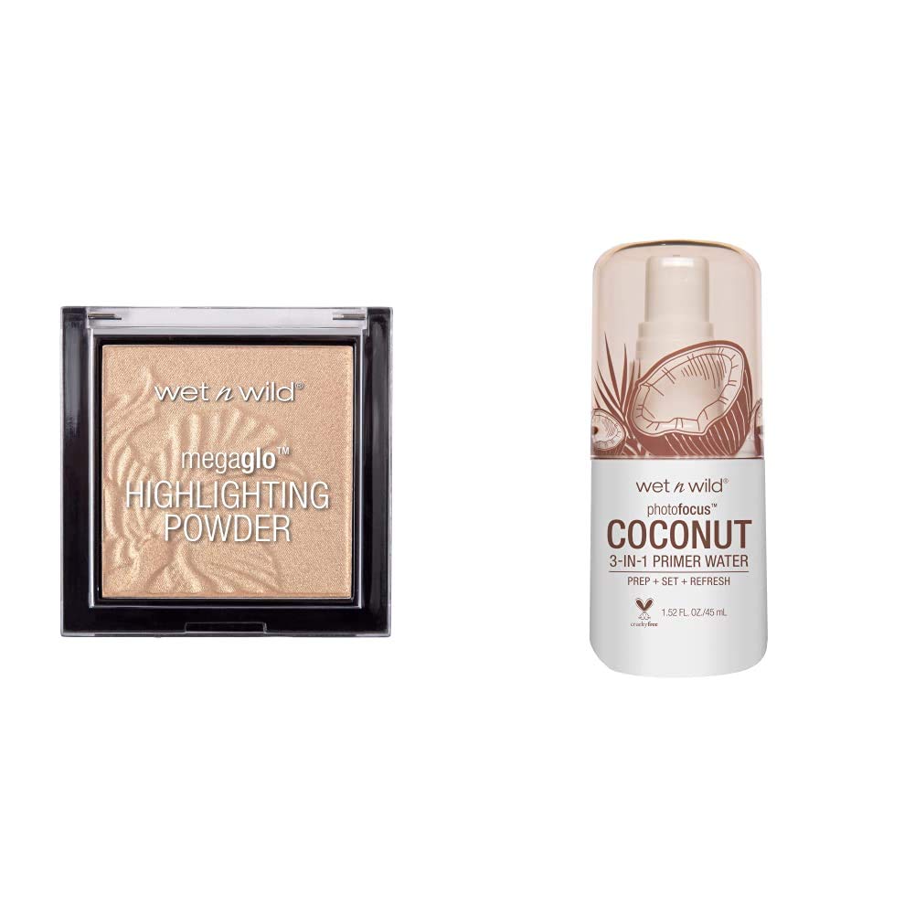 MegaGlo Highlighting Powder, Golden Flower Crown + wet ”n wild Photo Focus Primer Water, Coconut