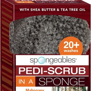 Pedi-Scrub Foot Exfoliating Sponge with Heel Buffer and Pedicure Oil, Mahogany, Contains Shea Butter & Tea Tree Oil, 20+ Washes, Pack of 1