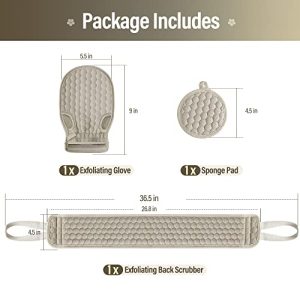 Suntee Exfoliating Back Scrubber For Shower, 3 Pcs Loofah Back Scrubber With Exfoliating Glove And Sponge Pad Set, Long Deep Clean Back Washer Bath Shower Scrubber For Men And Women (36.54.5 Inch)