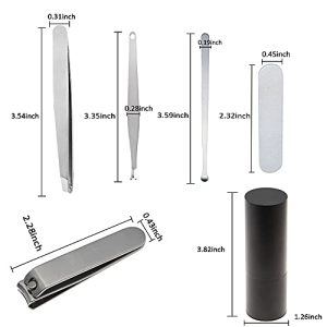 Surgehai Nail Clipper Set, Stainless Steel Manicure Kit With Fingernail Clipper, Nail File, Cuticle Pusher, Eyebrow Clip, Ear Spoon And Travel Case, Set Of 5 (Black)