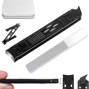 Travel Nail Clippers, Foldable Double Ended Nail Clipper Curved And Slanted Blade, Ultra Thin Finger Nail Clippers, Stainless Steel Nail Clippers For Men With Safe Lock, Black
