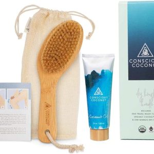 Travel Dry Brush Gift Set Bundle, Certified Organic Coconut Oil Travel Tube, Sustainable Bamboo Body Scrub Brush, Bundle For Skin Care, Great Gift, Exfoliation – Conscious Coconut