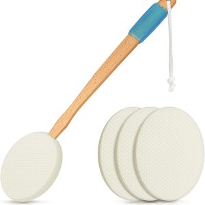 17.5In Long Lotion Applicator With 4 Pads – Long Handle For Easy Reach And Self Application Of Body Wash – Shower Brush For Both Men And Women (Travel Bag Included)