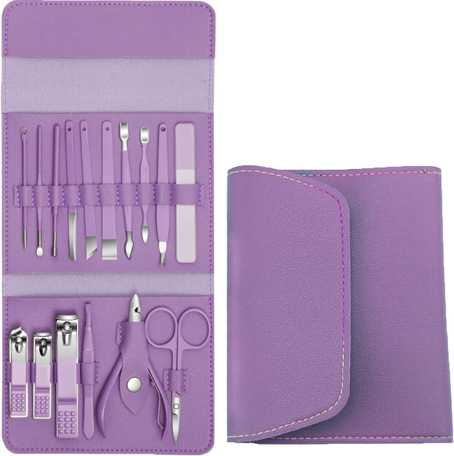 16 In 1 Manicure Set,Professional Pedicure Kit Nail Scissors Grooming Kit With Leather Travel Case For Family And Friends Gift