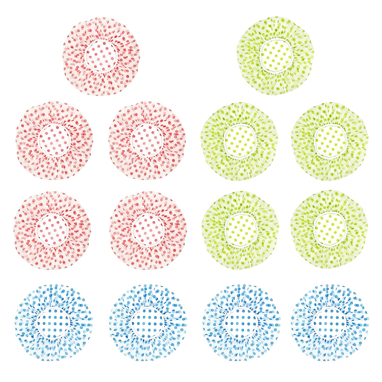 14 Pieces Reusable Shower Caps With Lace Elastic Band, Waterproof Eva Plastic Bathing Hair Cap Flower Dot Printed, Environmental Protection Bath For Beauty Salon Spa Hotel Travel Green