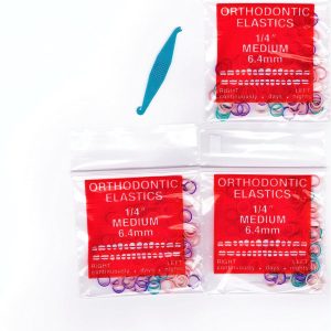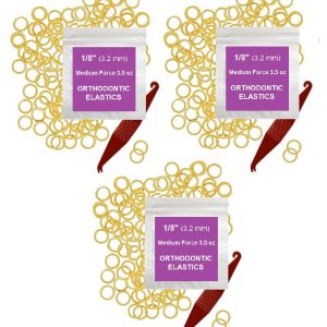 inch Orthodontic Elastic Rubber Bands 300 Pack Natural Heavy Force 6.5 oz. + Free Elastic Placer