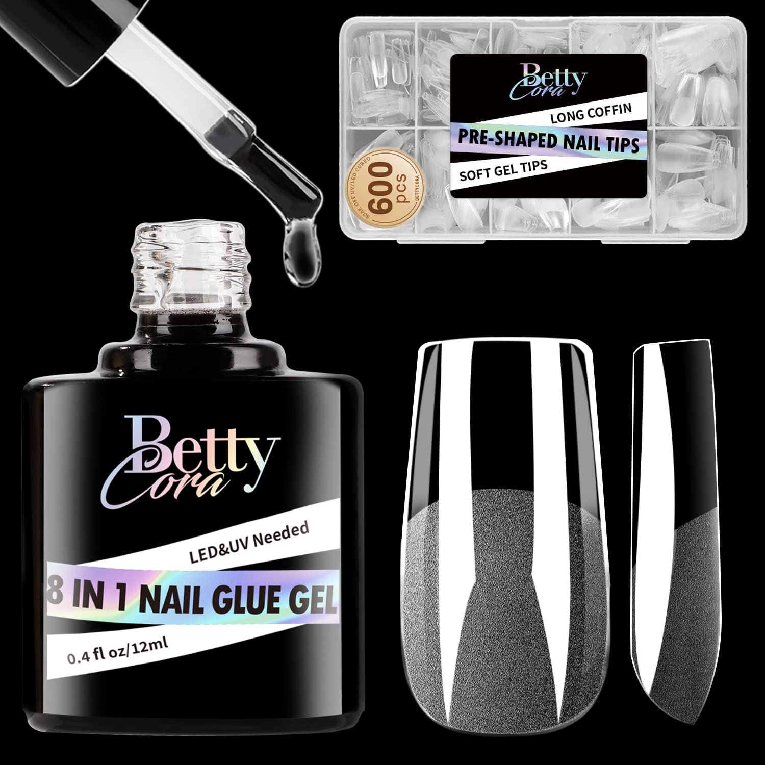 3 in 1 Base Gel Nail Glue for Acrylic Nails, 15ML Nail Gel Glue & Top Coat Gel for Nails