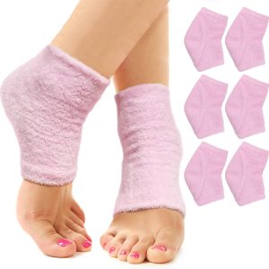 Heel Socks, 2 Pairs Soft Gel Lined Heel Socks for Dry Rough Cracked Feet, Gel Heel Repair Socks Overnight Moisturizing Spa Socks for Softening and Repairing Chapped Feet Skin Care (Skin)