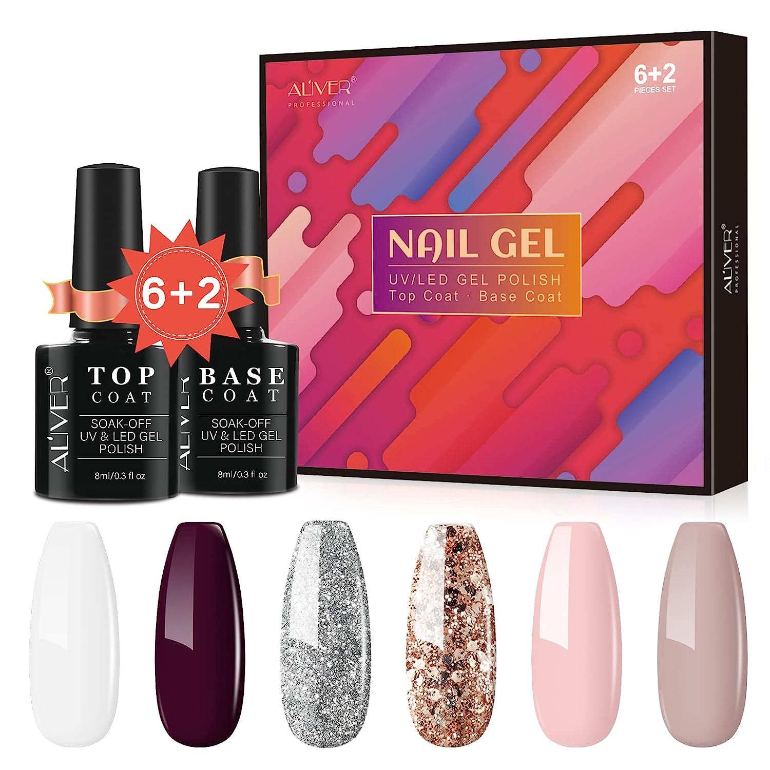 Nail Polish Set – Red Brown Pink 6 Colors Gel Polish Kit, Popular Nail Art Design Soak Off LED Lamp Nail Polish Gel Manicure Kit- Christmas Gifts Box
