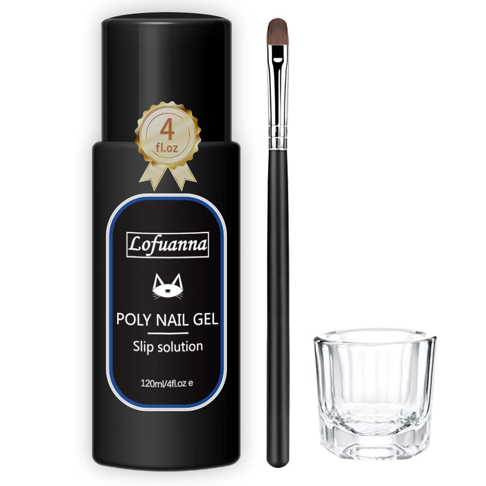 Poly Gel Slip Solution-120ml Slip Solution for Poly Extension Gel Nails,Anti-stick Gel Solution Liquid Set with Nail Brush and Glass Cup,Easy Spread for Poly Gel DIY for Beginners