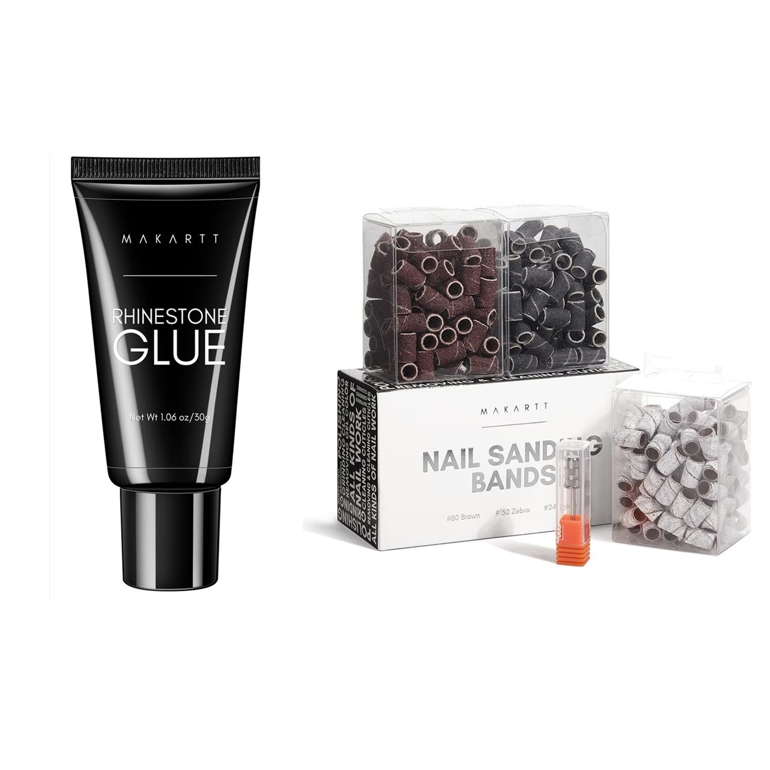 Nail Drill Bits Sanding Bands with Nail Rhinestone Glue Gel Bundle, Professional Sanding Bands for Acrylic Nails Gel Manicures , Super Strong Gem Glue Gel 1.06oz for Nail Jewels Crystals