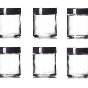 Oz CLEAR Glass Jar Straight Sided with Black Lid – Pack of 6 (4 OZ, Clear)